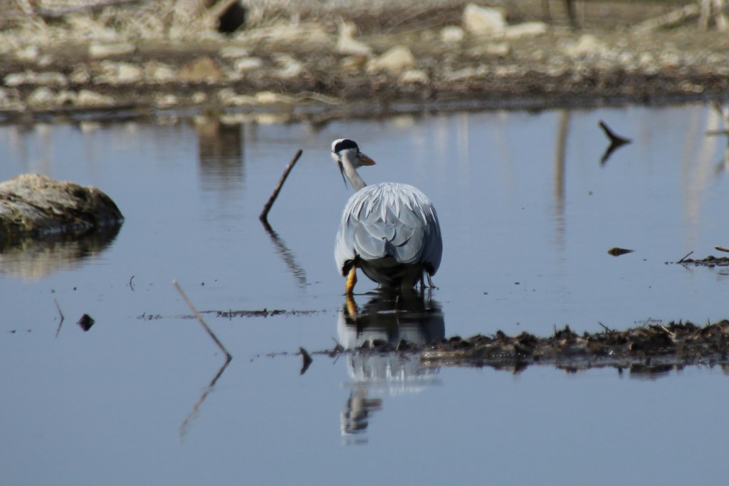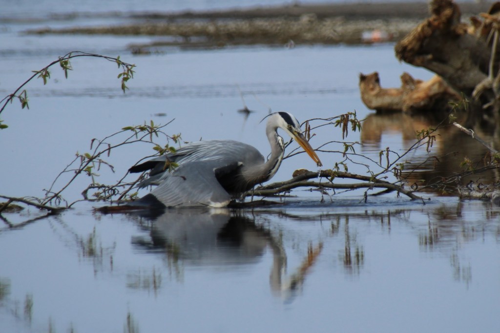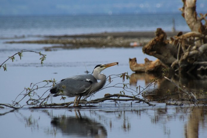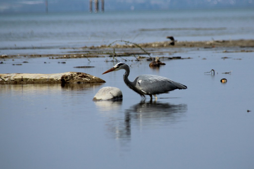 lag ich gestern am See und war schon fast etwas frustriert angesichts dessen, dass es so kalt und auch so leer war. Kaum Flugverkehr, nur ganz wenige Möwen und ein paar Schwalben waren unterwegs. Letztere zwar ganz bezaubernd, aber leider viel zu schnell für meine bescheidenen, fotografischen Fähigkeiten. Als Belohnung für mein Ausharren hat sich dann aber doch noch in letzter Minute, kurz bevor ich bereits nach Hause fahren wollte, ein Reiher blicken lassen und ich durfte ihn lange beim Fischen beobachten. Faszinierend wie präzise er vorgegangen ist, zunächst ist er ganz ruhig und gelassen durch den See gewatet. Dann seine Beute fixierend, ganz still, ruhig und aufmerksam stehen geblieben. Und im richtigen Augenblick hat er zugeschlagen. Erfolgreich und absolut zielsicher……