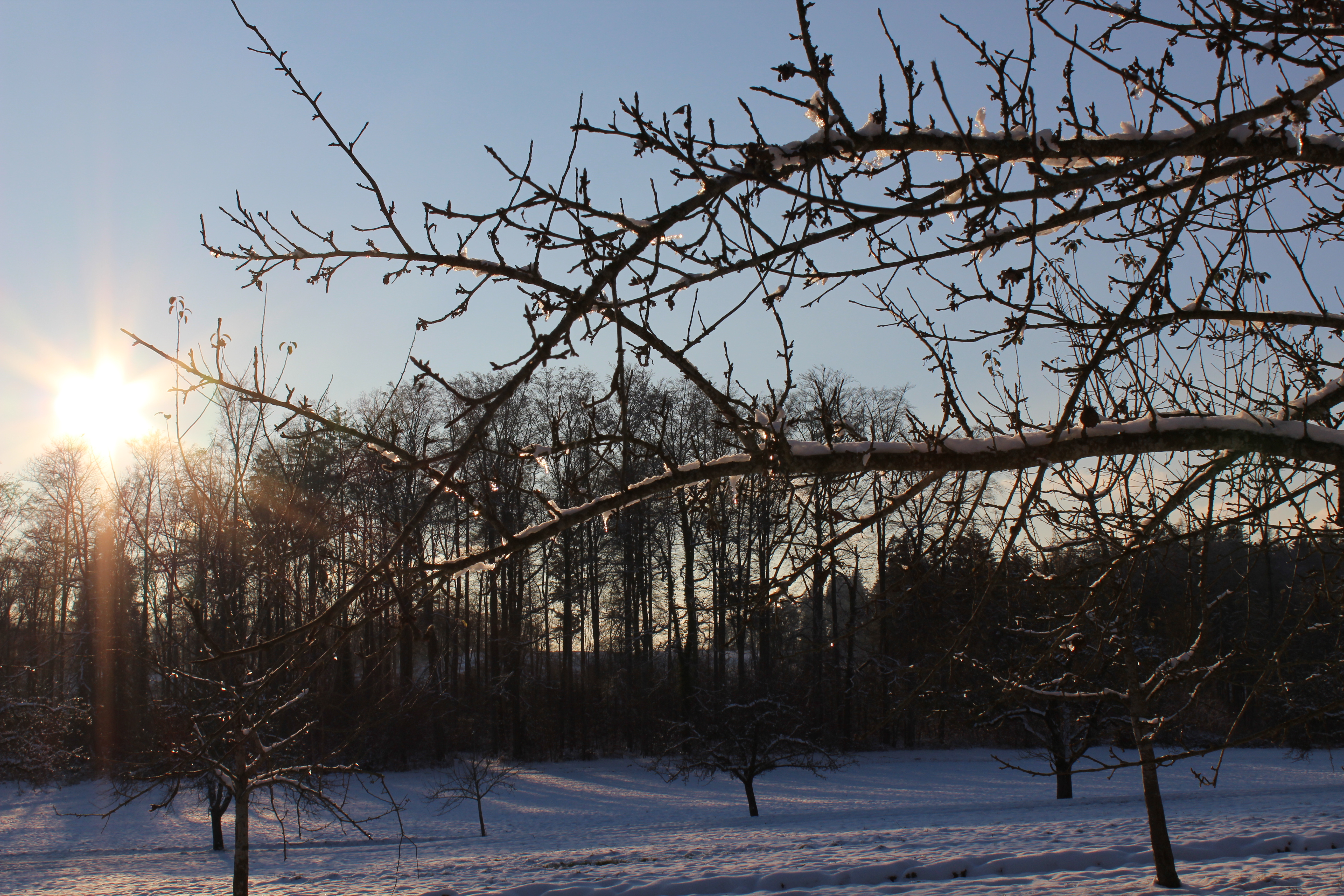 Aber heute Früh, Sonnenschein und blauer Himmel …..und gleich hellt sich auch die Stimmung wieder auf und beim morgendlichen „Spaziergängchen“ mit den Hunden werde ich regelrecht absorbiert von der zauberhaften Stimmung, in welche die Umgebung durch Sonne und klirrende Kälte getaucht wird…