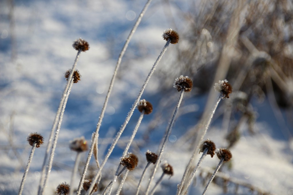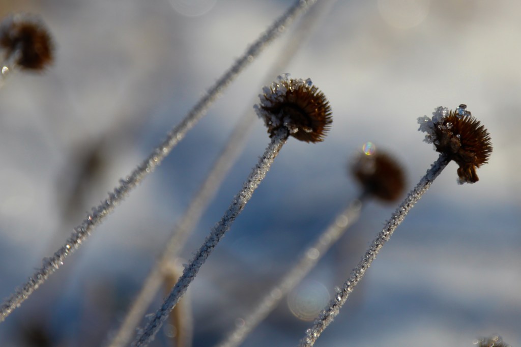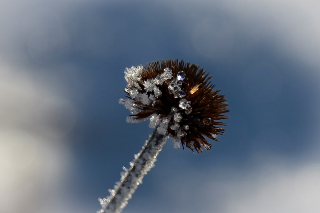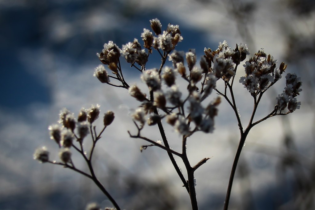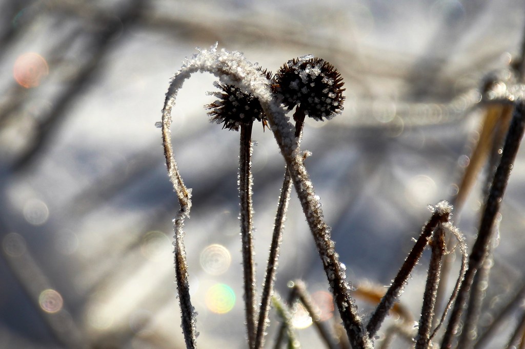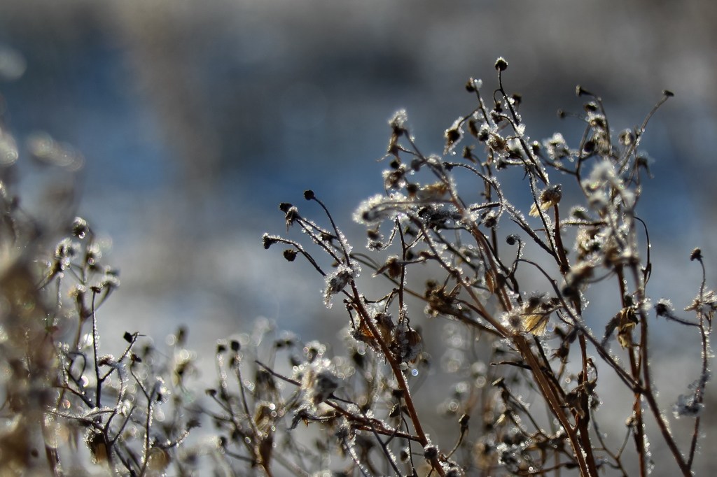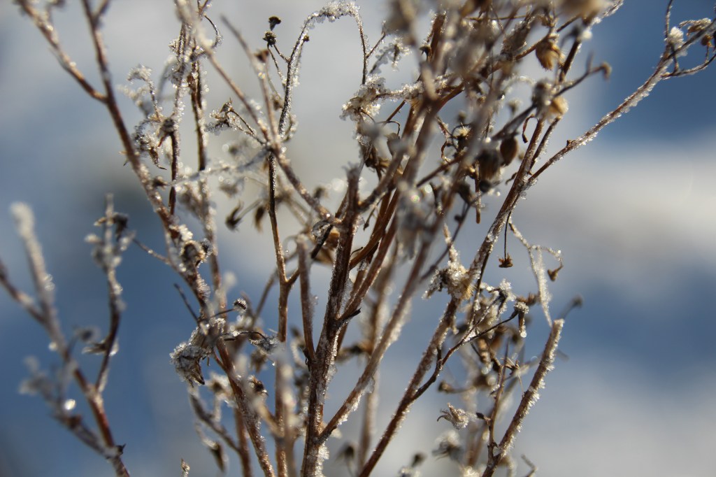 Diese Bilder stammen aus unserem Vorgarten, nach einer frostigen Nacht…der Nacht in der der erste Schnee gefallen ist…