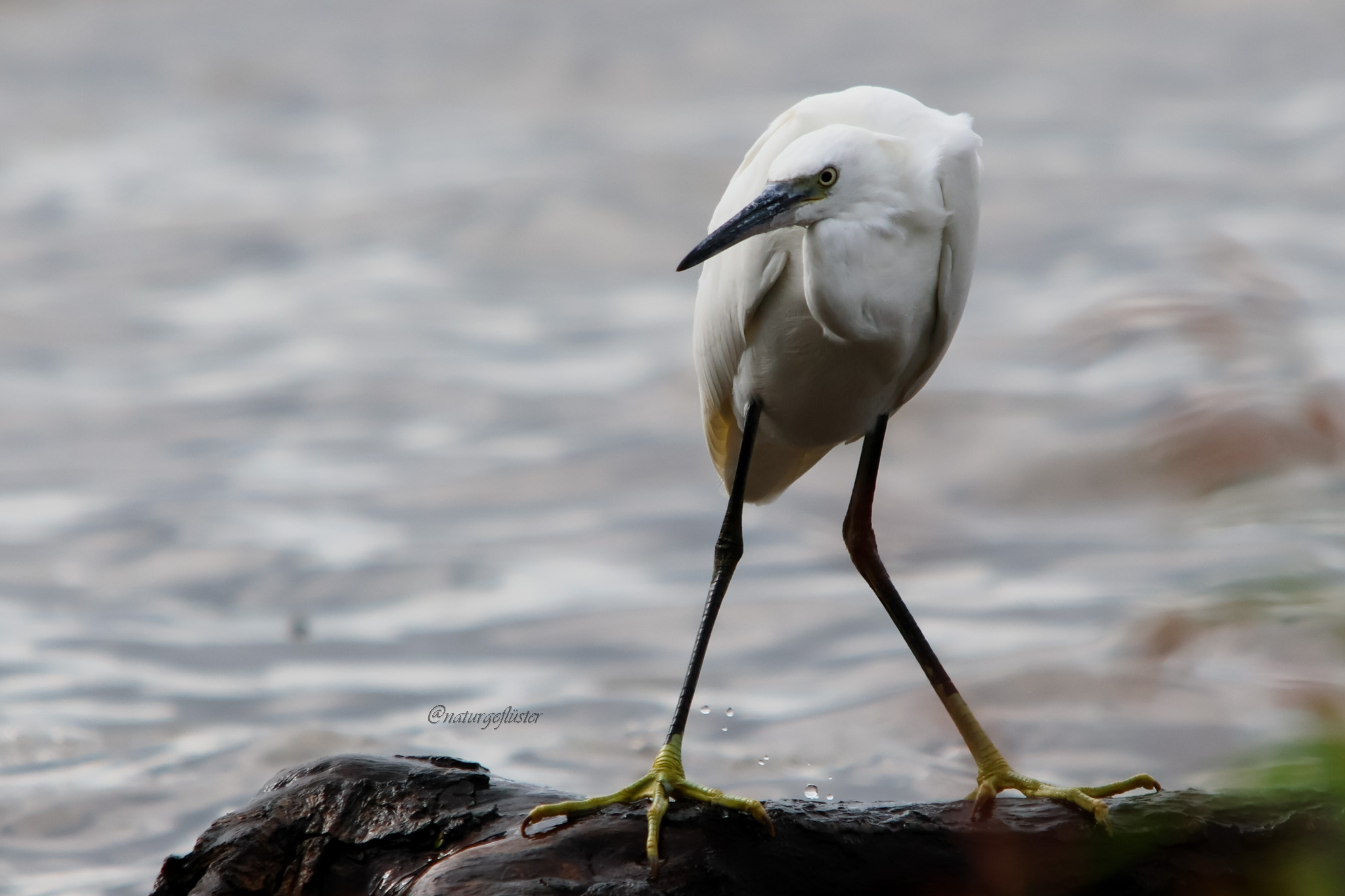 Ein Silberreiher, so mein erster Gedanke, den ich aber, aufgrund der zierlichen Statur des Neuankömmlings, sehr schnell wieder verworfen hatte.